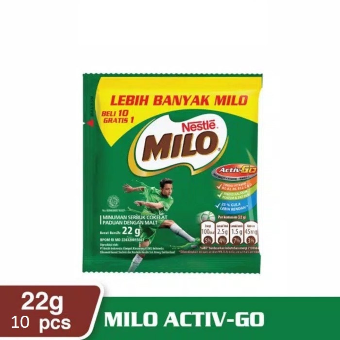 Nestle MILO ActivGo merupakan minuman serbuk cokelat paduan dan ekstrak malt (barli) yang unik dengan komposisi Vitamin B12, B3, B6, B2, C dan D serta Kalsium, Fosfor dan Zat Besi untuk mendukung aktivitas sepanjang hari