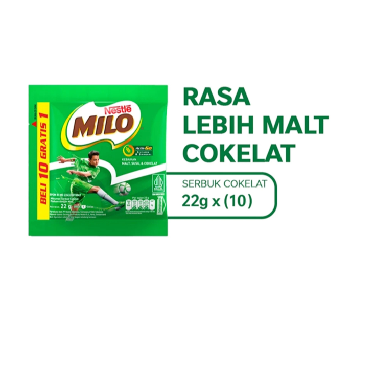 Milo Activ-Go Sachet 22gr adalah susu bubuk dengan kandungan Vitamin B, Vitamin C dan kalsium serta protomalt yang menghasilkan energi dan nutrisi yang di butuhkan oleh tubuh untuk mendukung aktifitas setiap hari.