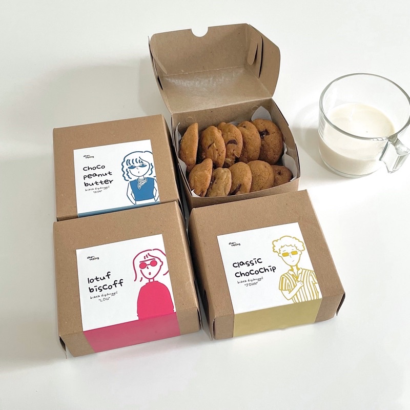 Selain giant cookies, kita juga punya mini cookies Tersedia 3 rasa; Classic Chocochip, Lotus Biscoff dan Choco Peanut Butter.
