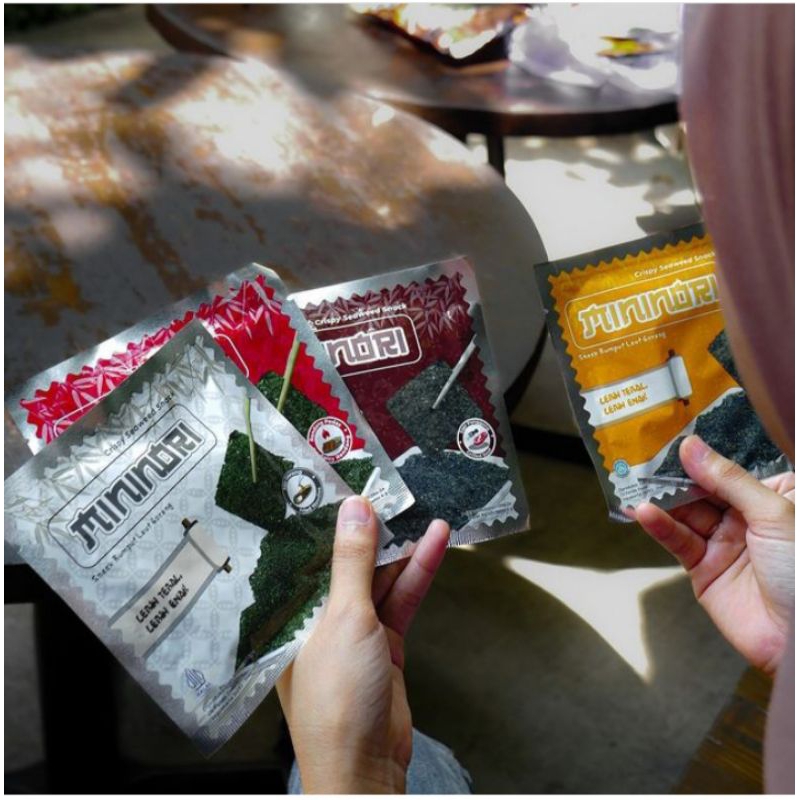 Mininori Seaweed adalah snack rumput laut yang renyah dan gurih terbuat dari rumput laut pilihan yang berkualitas, diproses dengan proses produksi yang higienis dan sudah diakui oleh BPOM (Badan Pengawan Obat-obatan dan Makanan) Indonesia.
