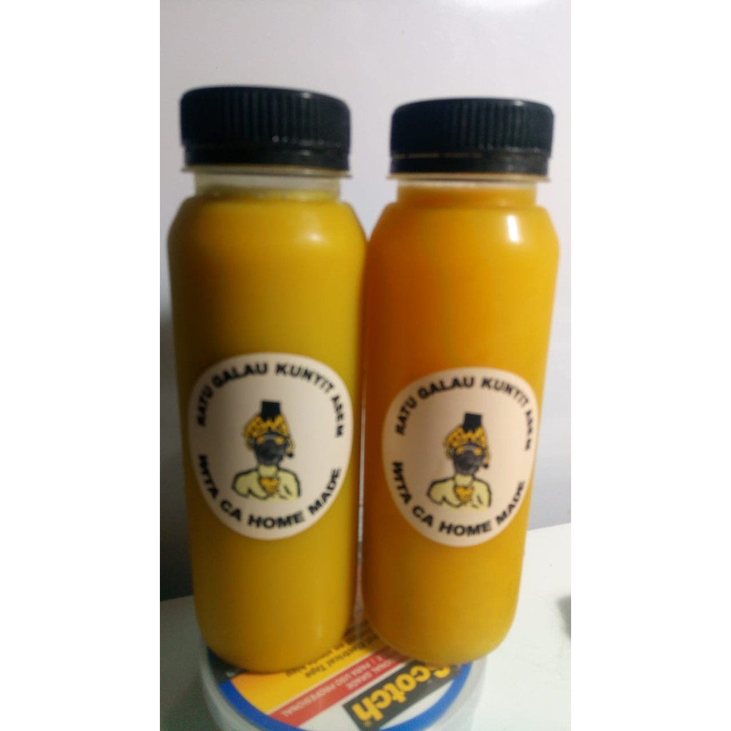 Minuman kesehatan Ratu Galau Kunyit Asem, 250 ML. minuman sensasional dari WITA CA HOME MADE. MInuman Kunyit yang di padukan dengan bahan bahan alami nusantara yang di racik khusus sehingga menghasilkan rasa yang Khas .