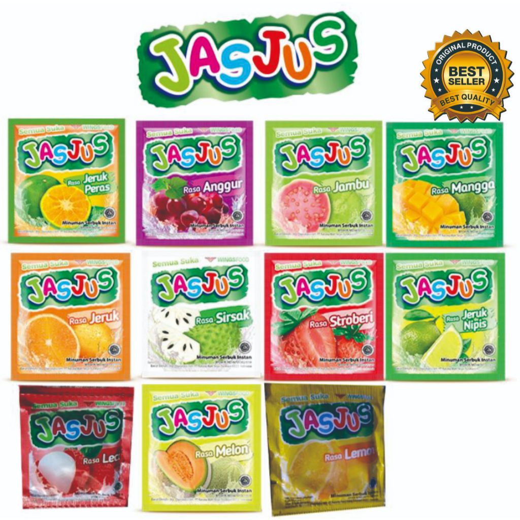 Jasjus Minuman Serbuk Aneka Rasa (1 Renceng=10Sachet) Jas Jus adalah minuman buah segar instan dalam bentuk serbuk granulasi modern yang mudah larut dan dapat tercampur sempurna, sehingga praktis untuk disajikan dalam kondisi dingin ataupun hangat. Keunggulan: Berbentuk granula (butiran kapsul), sehingga lebih cepat larut di dalam air Aroma buah yang harum dan terjaga kesegarannya Dikemas dengan kemasan berkualitas yang kedap udara sehingga tidak mudah menggumpal Jas Jus tersedia dalam 10 varian: Anggur Orange Mangga Jambu Biji Strawberry Melon Lemon Leci Sirsak Jeruk Nipis Jeruk Peras