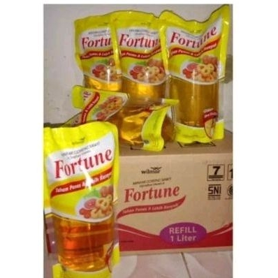 Minyak goreng kemasan refill merk FORTUNE berat 1 liter.