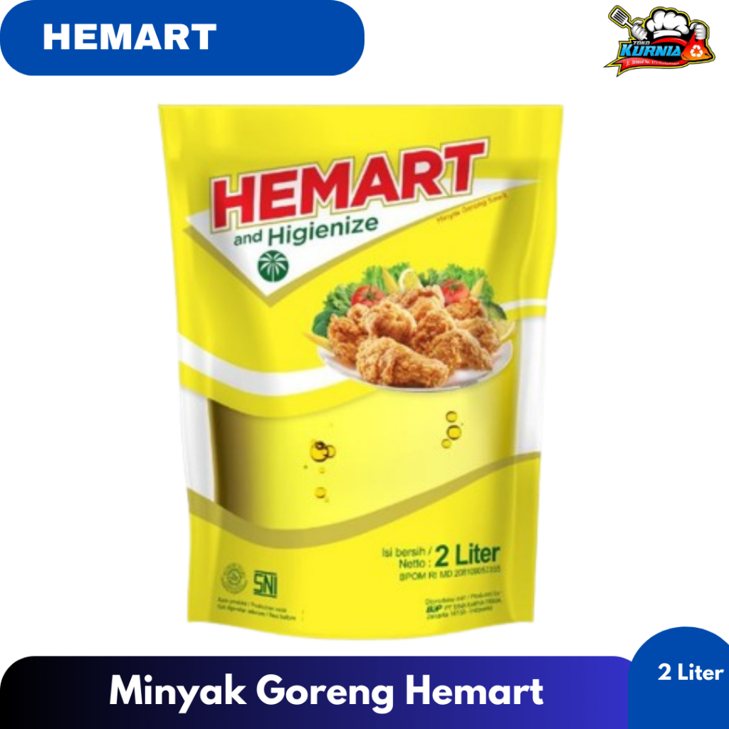 Hemart merupakan Minyak goreng terbuat dari bahan berkualitas dan diproses melalui sistem pemurnian terintegrasi penuh. Mampu membuat hasil masakan lebih bernutrisi, sehat, dan gurih, Mengandung asam lemak tak jenuh, rendah lemak, serta omega 6 & 9 yang mampu menunjang kesehatan Anda dan menjaga kadar kolesterol tubuh. Memiliki warna kuning keemasan yang berasal dari beta karoten alami yang kaya akan Pro Vitamin.