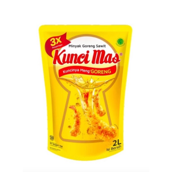 Minyak goreng kunci mas.Kemasan refil 2 liter. Jernih, mudah di pakai.