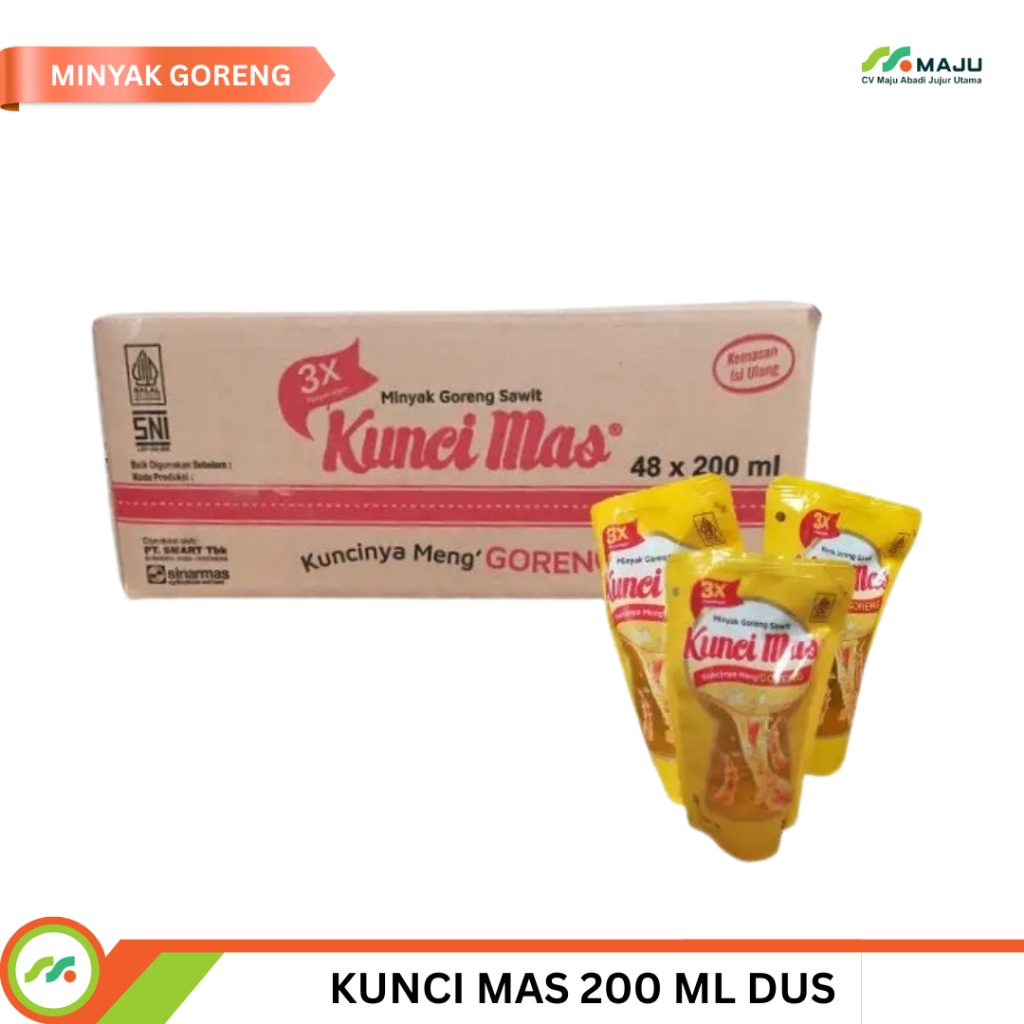 Minyak Goreng Kunci Mas 200ml 1 Dus merupakan minyak goreng yang kualitasnya terjamin dengan sertifikasi BPOM.