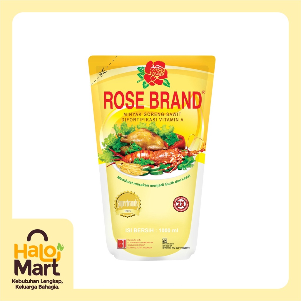 Minyak Goreng Rose Brand terbuat dari kelapa sawit pilihan berkualitas, diproses secara modern dengan teknologi tinggi secara higienis untuk membuat semua masakan Anda menjadi lebih gurih dan lezat. Minyak Goreng Rose Brand mengandung BETA karoten, omega 9, vitamin A dan E yang baik untuk asupan minyak sayur untuk tubuh Anda. Minyak Goreng Rose Brand sangat cocok untuk setiap masakan yang digoreng atau masakan yang membutuhkan tambahan minyak dalam proses pembuatannya.