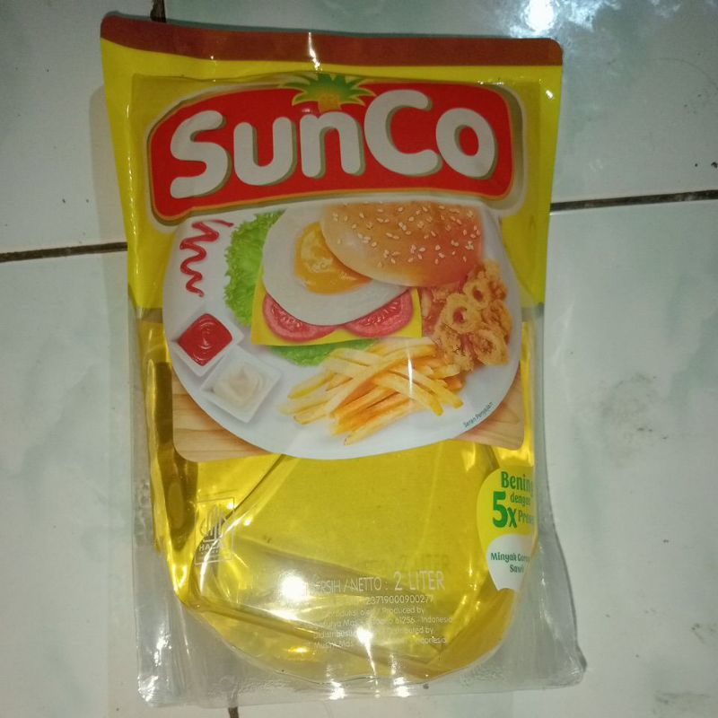 minyak goreng sunco 2L diproduksi dari buah kelapa sawit pilihan melalui 5x proses penyaringan.sehingga menghasilkan minyak yng berkualitas dan jernih.