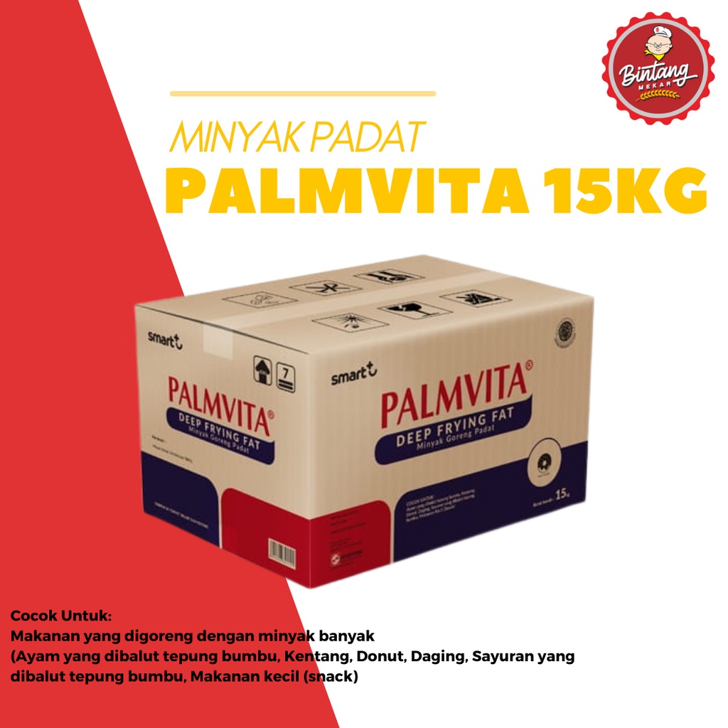 Minyak Padat Palmvita Deep Frying Fat Minyak Padat spesial untuk menggoreng aneka gorengan (Risoles,Donat,fried chicken,somay,dll) Lebih efisien,tidak meninggalkan minyak di makanan,lebih renyah,beraroma,dan membuat umur makanan tahan lama. Berat15 kg telah bersertifikat Halal (MUI), dan juga sertifikasi untuk Sistem Manajemen Keamanan Pangan (ISO 22000) dan Sistem Manajemen Mutu (ISO 9001).