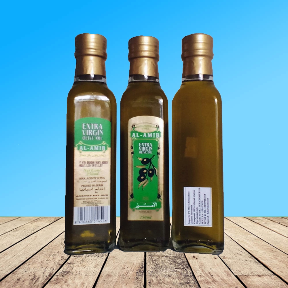 minyak zaitun 100% extra virgin olive oil murni Al-Amir 250mldapat di minumMinyak Zaitundihasilkan dari tanaman Zaitun. Kandungan dalam Minyak Zaitun antara lain vitamin A, vitamin B1, vitamin B2, vitamin C, vitamin D, vitamin E, vitamin K, kalsium, zat besi, sodium dan potasium.Minyak Zaitun bermanfaat mengobati rasa nyeri, mengurangi resiko penyakit jantung, mencegah diabetes, mengobati kanker, menjaga kesehatan kulit, menghilangkan ketombe.Minyak zaitun adalah minyak yang dihasilkan dari tanaman jaitun. Dalam minyak zaitun terkandung zat yang bermanfaat sekali bagi kesehatan diantaranya terkandung vitamin A, B1, B2, C, D, E, K, kalsium, zat besi, sodium dan potasium.