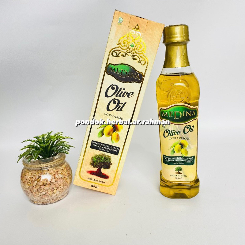Minyak Zaitun Medina adalah minyak zaitun perasan pertama yang dihasilkan dari buah zaitun yang matang dan segar yang diambil dari daratan yang terbentang luas diolah dengan menggunakan teknologi first cold pressed sehingga menghasilkan minyak zaitun yang terbaik dan berkualitas tinggi yang bebas dari kolesterol.