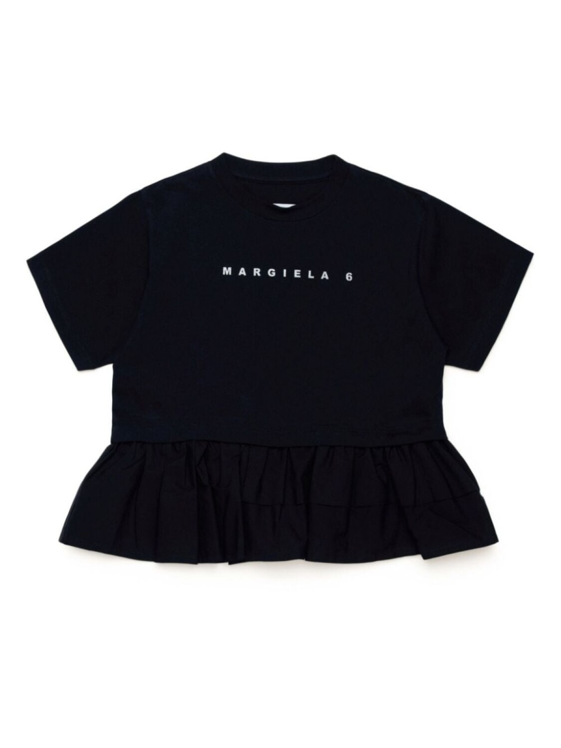 MM6 Maison Margiela Kids футболка с логотипом и оборками, черный