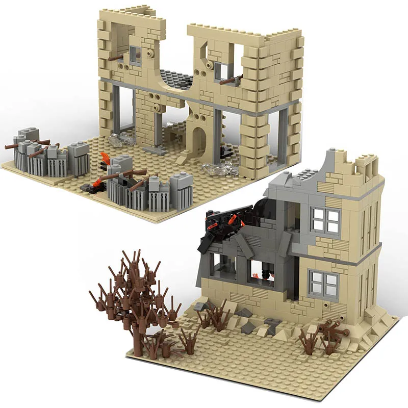 MOC Parts военное поле боя WW2 руины оружие крепость Блокировка модель здания строительные блоки армия Строительная игрушка детский подарок