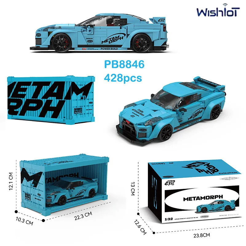 MOC Racing Car PB8846 Model Building Blocks With Display Box 428pcs Sports Cars Series Assembled Collection Vehicle Small Bricks