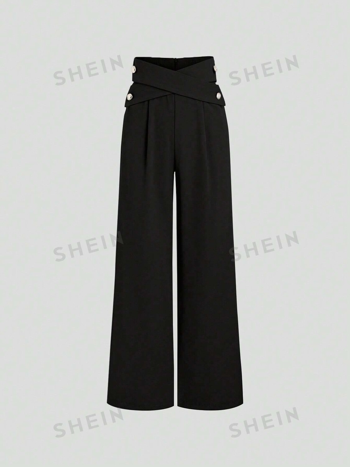 MOD Женские широкие брюки с высокой талией и пуговицами для повседневной носки Shein, черный