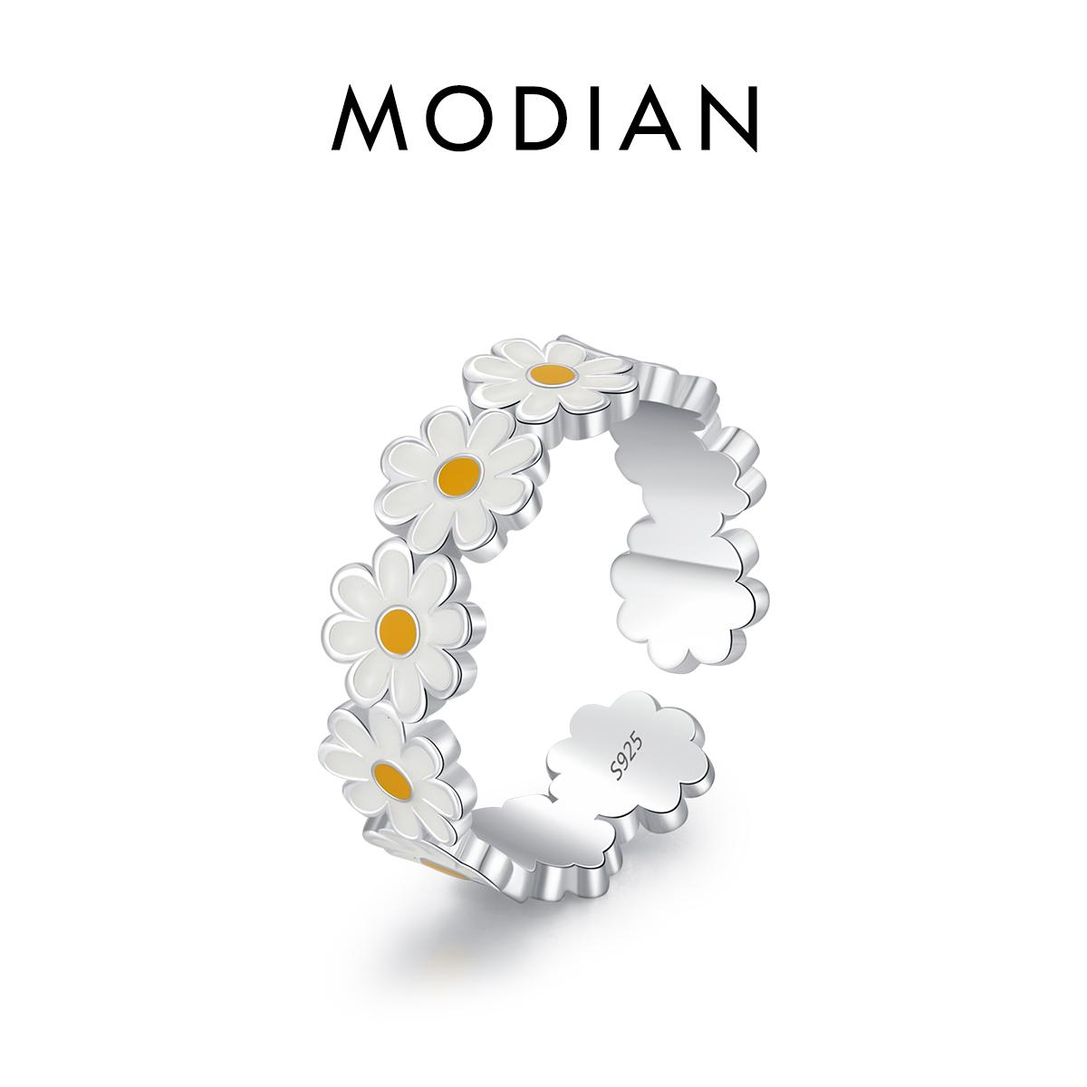 MODIAN, твердое серебро 925 пробы, роскошное эмалированное кольцо с маргариткой, регулируемое кольцо на палец для женщин, изысканные вечерние ювелирные изделия, подарок на день рождения серебряный