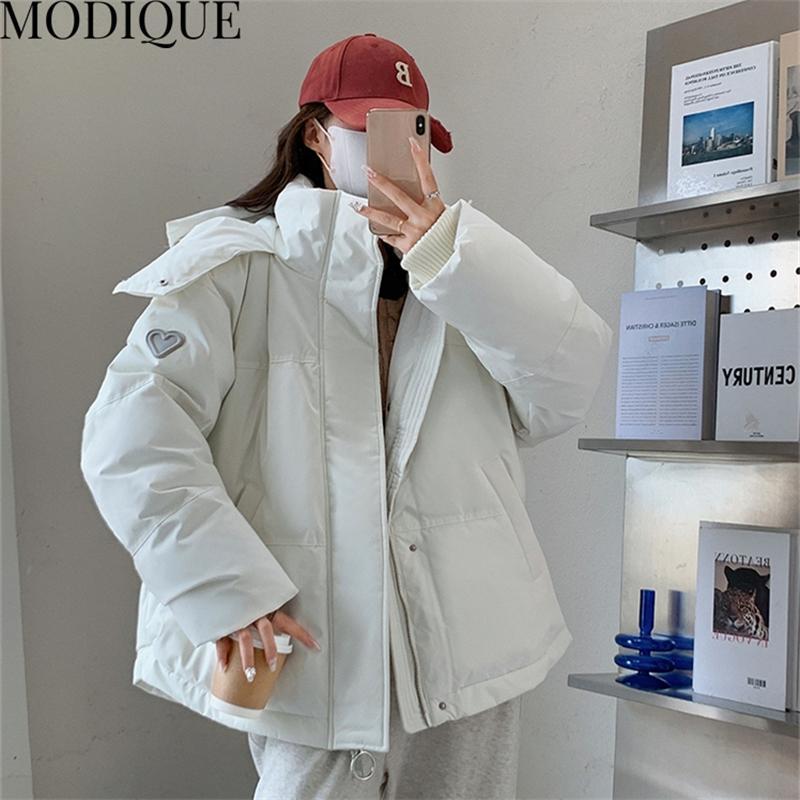 MODIQUE Зима больших размеров, новая женская универсальная утолщенная короткая ватная куртка с капюшоном, женская повседневная однотонная куртка на молнии с длинным рукавом