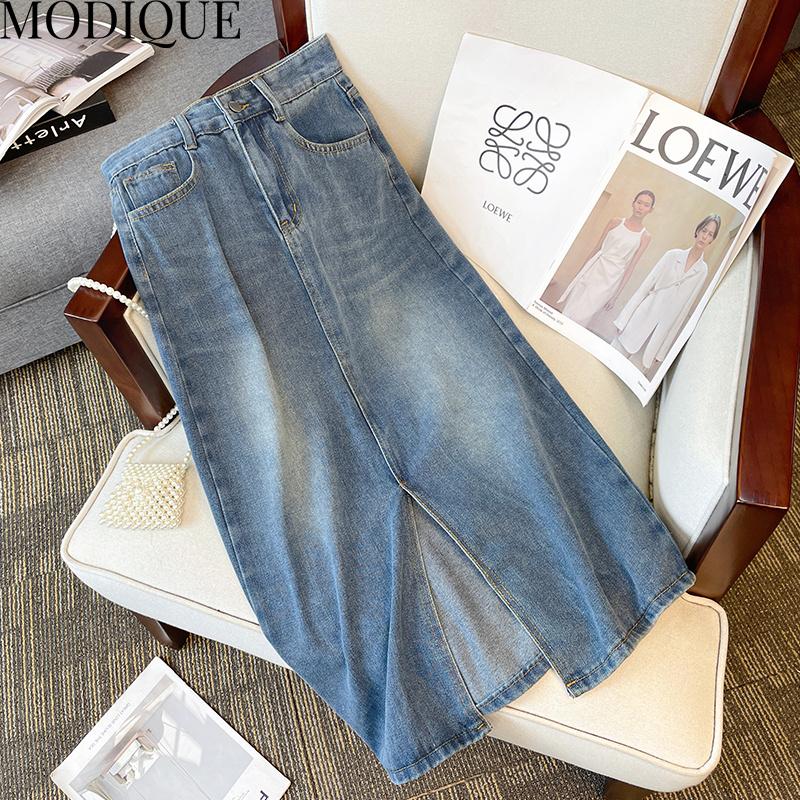 MODIQUE летние шорты-юбка женские эластичные свободные повседневные базовые женские трапециевидные однотонные милые платья-футляры с высокой талией джинсовая юбка синего цвета M синий