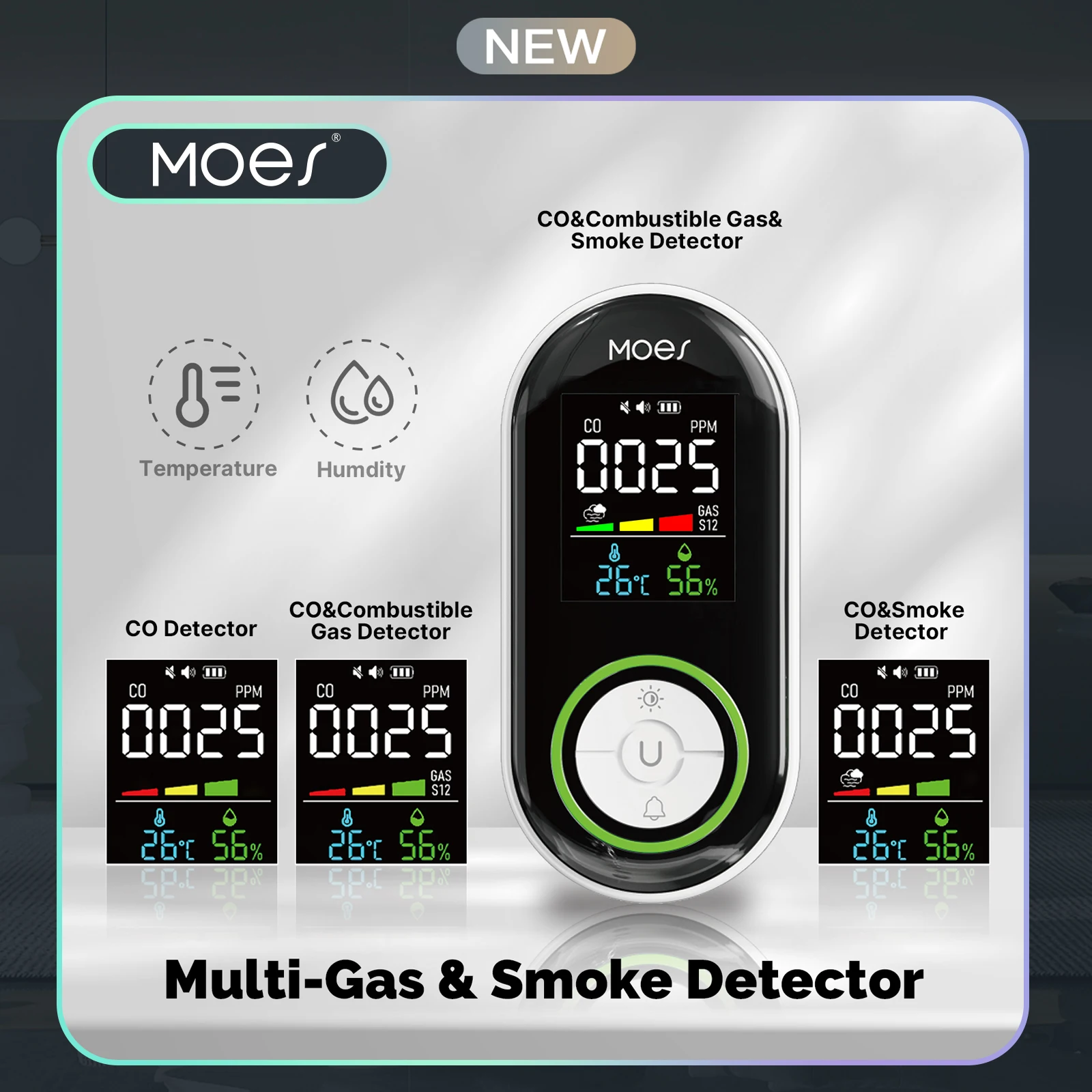 MOES CO Smoke Gas Detector Alarm Plug-in Carbon Monoxide Sensor Warning LED Display Temperature Humidity Kitchen Garage Boiler