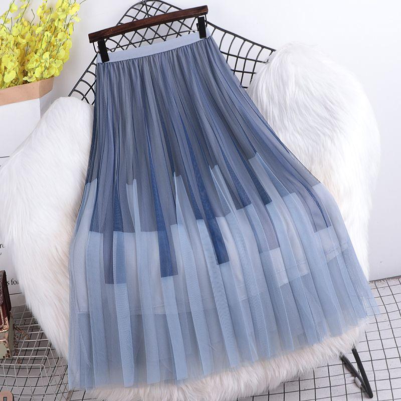 MOJTA летняя женская сетчатая большая распашная юбка контрастного цвета, эластичная тонкая газовая юбка с высокой талией one size синий