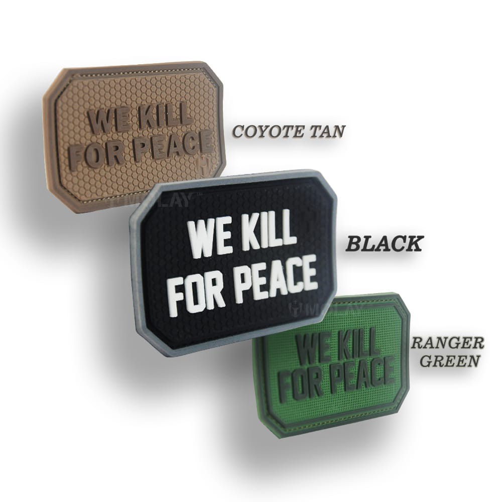 Molay We Kill For Peace Patch.Deskripsi Produk:- Ukuran 5x8cm- Terdapat velcro di bagian belakang- Bahan PVC- Dibuat di IndonesiaPilihan Warna:- Black- Coyote Tan- Olive Drab