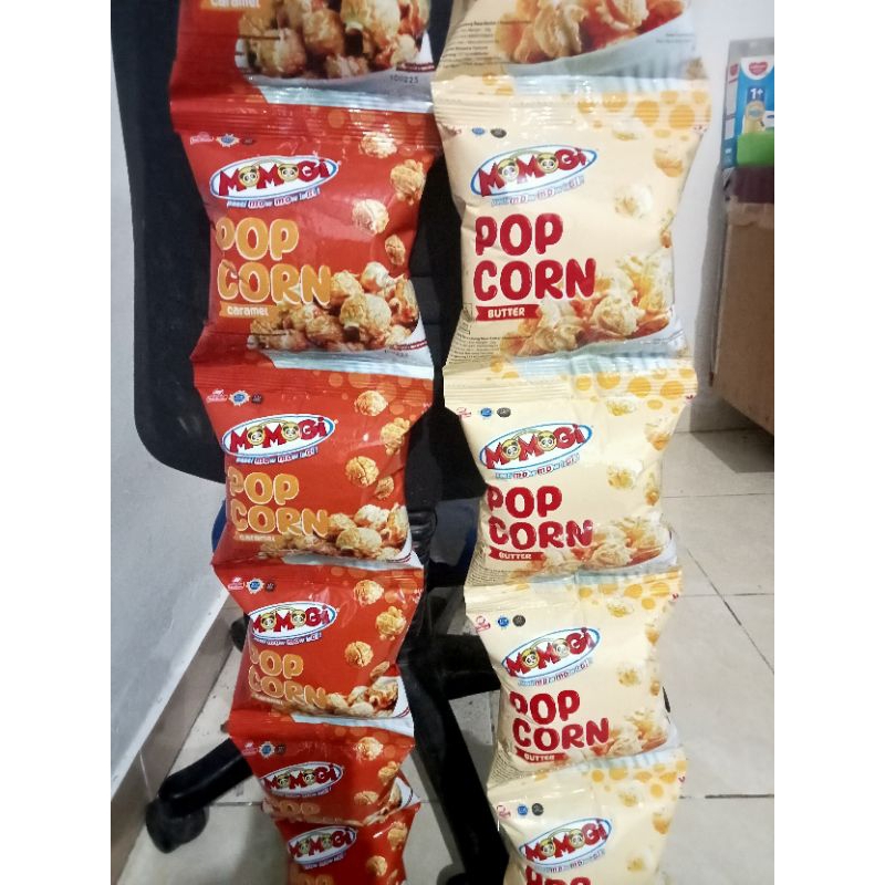 snack baru dari momogi , popcorn momogi dengan 2 rasa yaitu : butter dan caramel