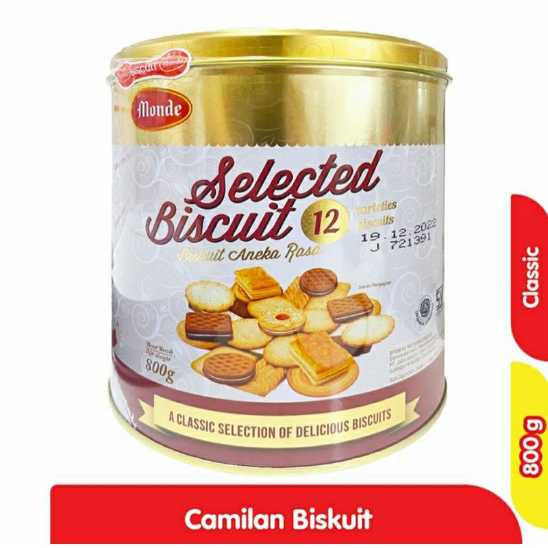 Monde Selection Biscuit Gold Assorted 800 g adalah biskuit aneka rasa dengan 12 varian biskuit didalam kemasan kaleng. Cocok untuk disajikan untuk momen kebersamaan bersama teman dan keluarga. Tersedia dalam kemasan kaleng 800 g.
