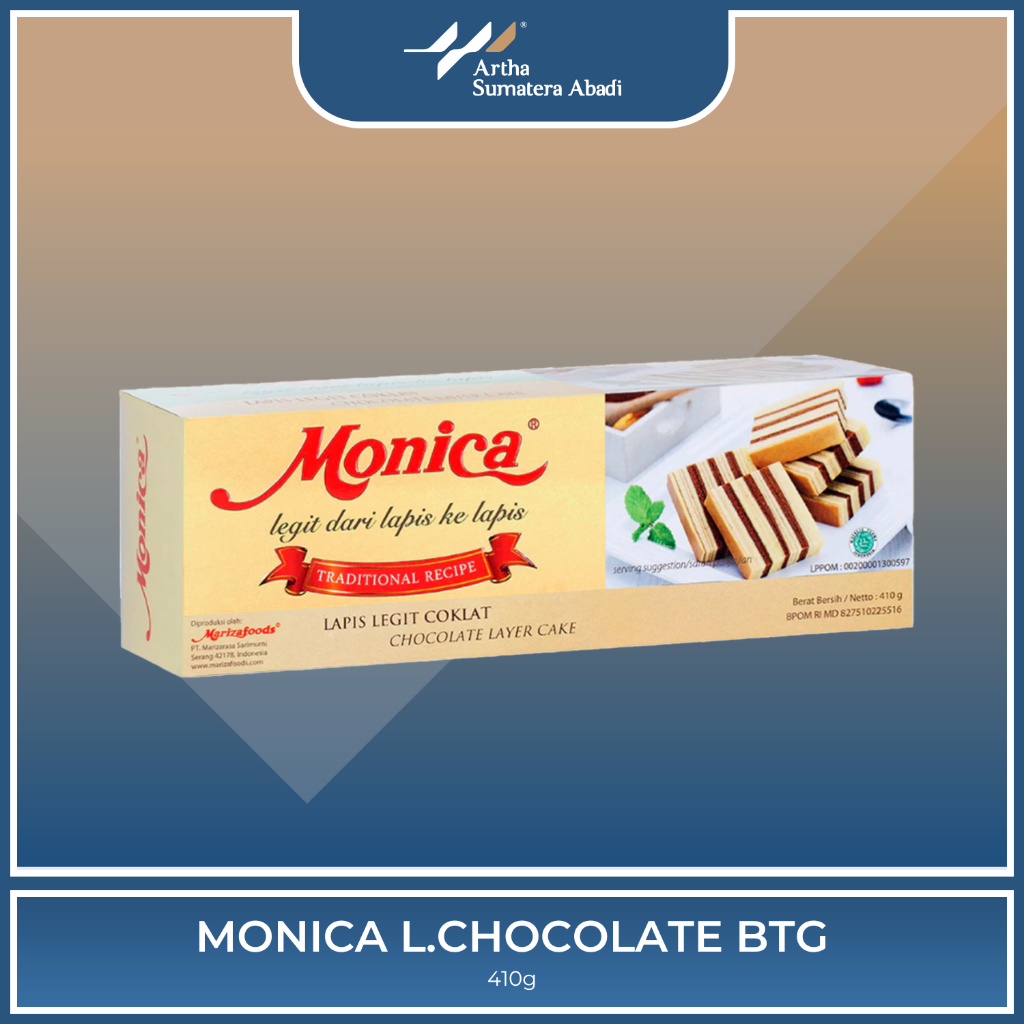 Tambahkan Monica Lapis Legit Chocolate ke dalam daftar camilan favorit Anda untuk menikmati sensasi legit yang tak terlupakan!