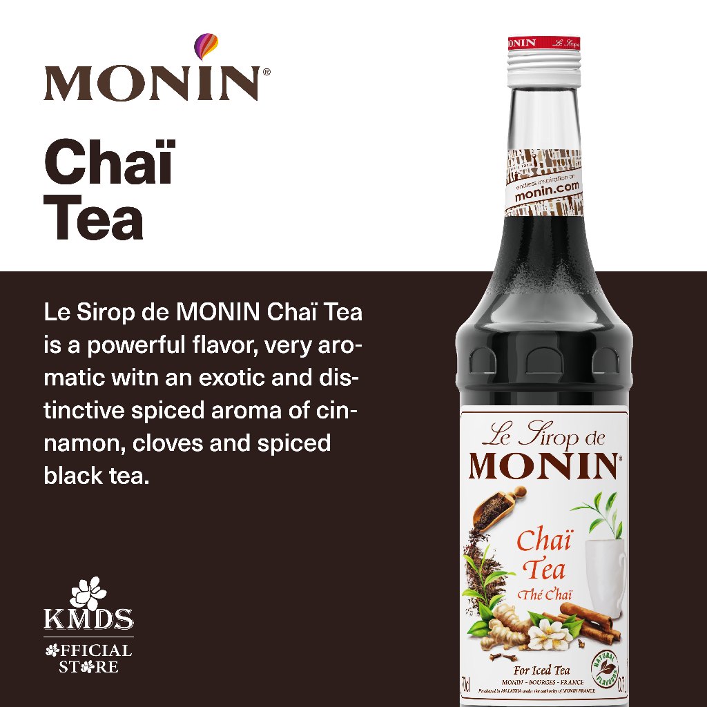 Monin Chai Tea Concentrate is the convenient, premium choice for creating delicious spiced chai teas, hot or cold specialty coffee drinks, dessert cocktails, culinary creations and more.