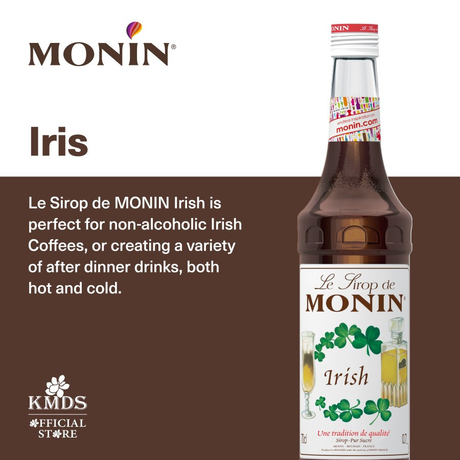 Developed as one of the virgin flavour range, MONIN Irish syrup has a flavour profile which is similar to Irish cream, a cream liqueur based on whiskey, cream and coffee, for use in non-alcoholic after-dinner drinks.