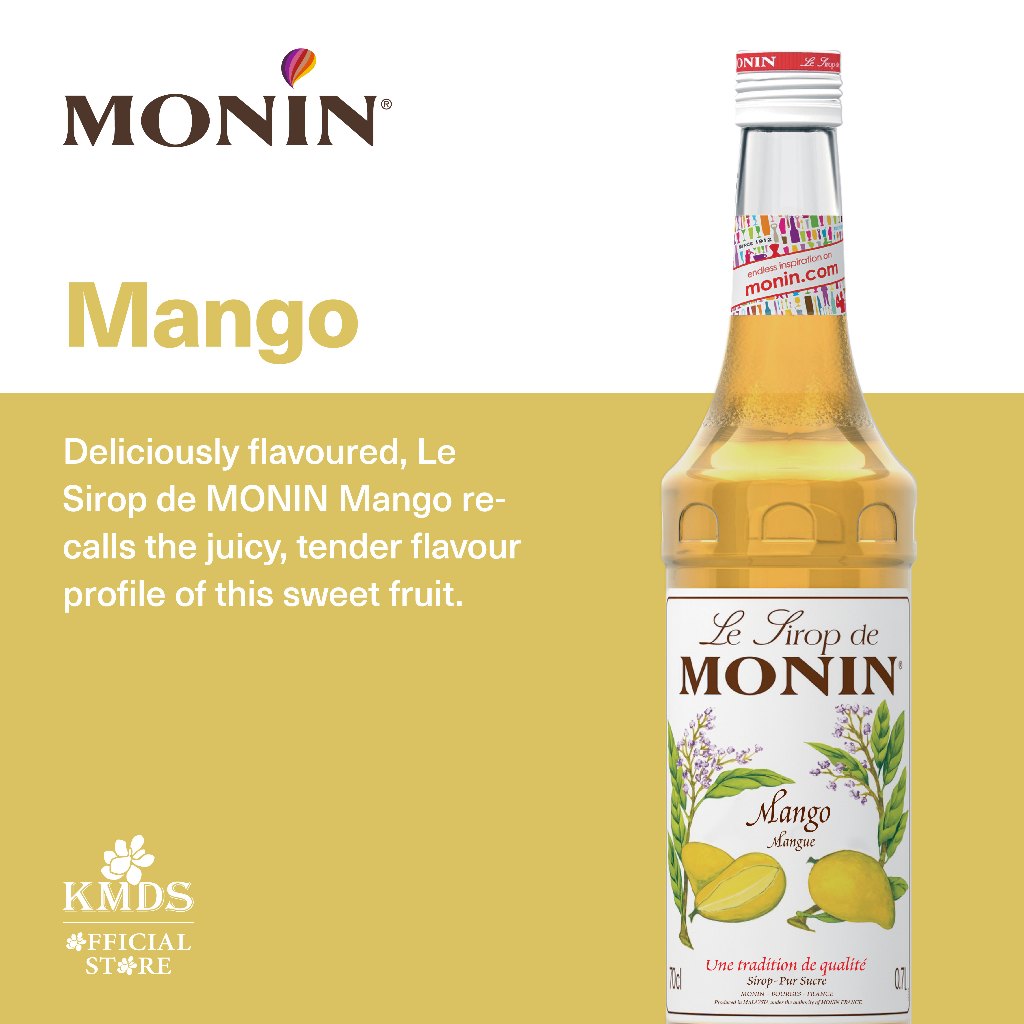 MONIN Mango syrup mixes perfectly in your favourite cocktail, mocktail, dessert and frozen drink.