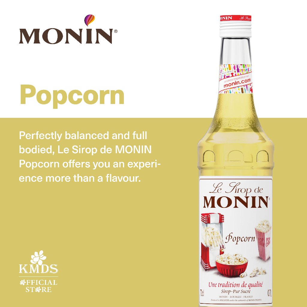 MONIN Popcorn syrup mixes salty with sweet in smoothies, milkshakes, lattes, cocktails, mocktails, and also as a dessert topping.