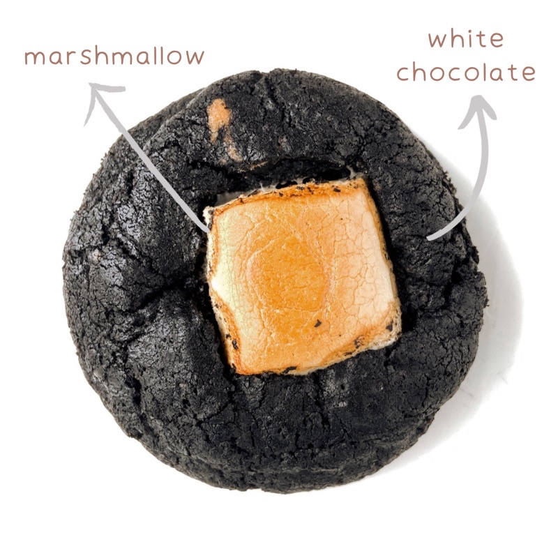 Black chocolate cookies topped with marshmallow and filled with white chocolate to make your day better!