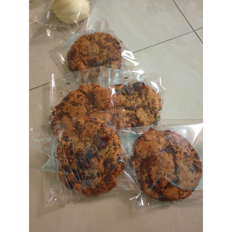 Chocolate cookkes raksasa dengan potongan chocolate (bukan chocochips) ini enak bangett karena chewy tapi melimpah coklatnya
