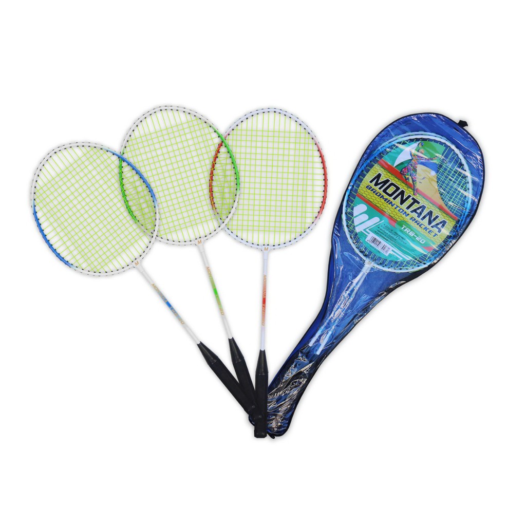 Badminton Racket / Raket Bulu Tangkis Montana TRB 1 S> Tersedia dalam berbagai pilihan warna> Senar yang kuat> Dilengkapi dengan tas pembungkus> 1 SET TERDIRI ATAS 2 RAKET