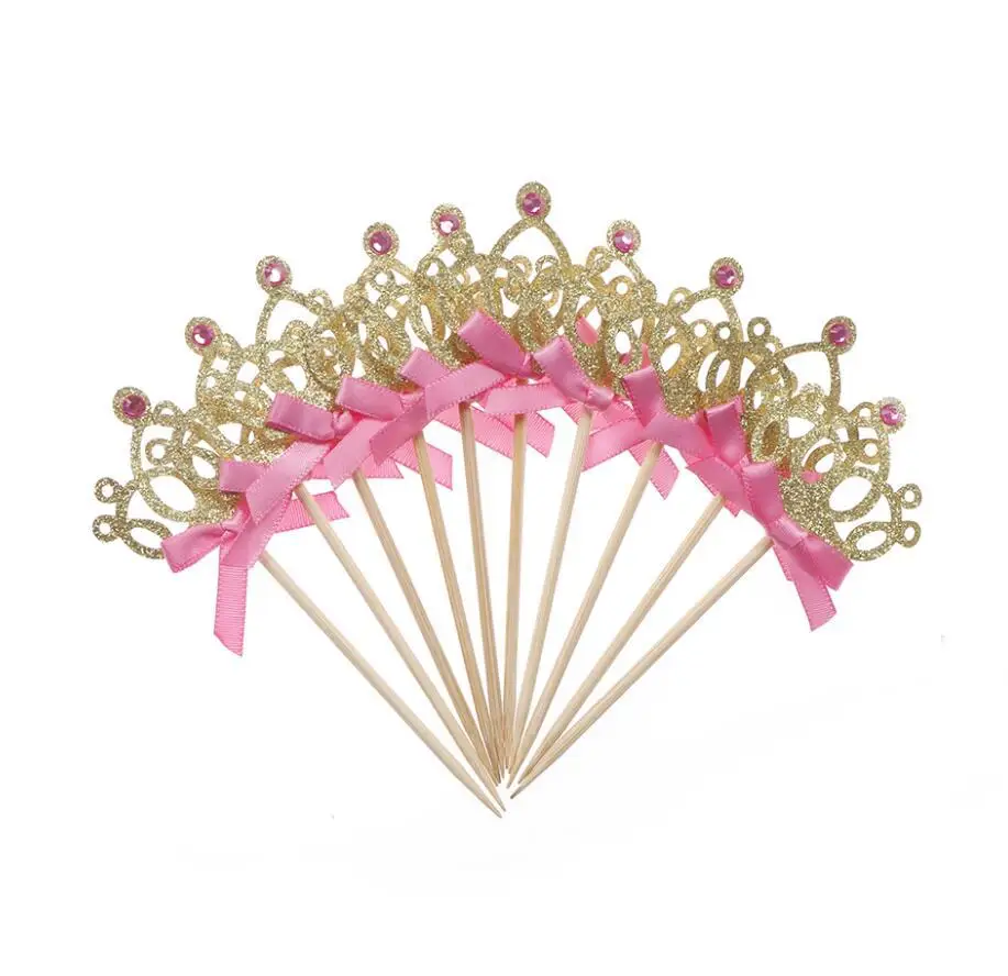 MOONBIFFY Золотые розовые короны для торта 10 шт
