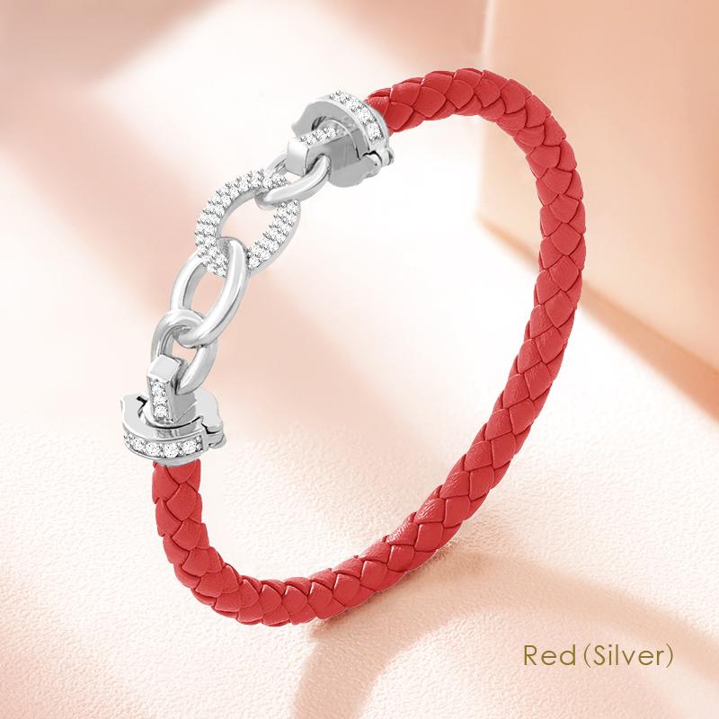 MOONLIGHT Новый роскошный женский циркониевый круглый браслет из натуральной плетеной кожи для женщин, модные аксессуары, 8 цветов 22cm