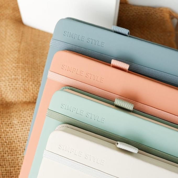 Dilengkapi dengan tali karet elastis, pita pembatas, dan slot khusus untuk pena.