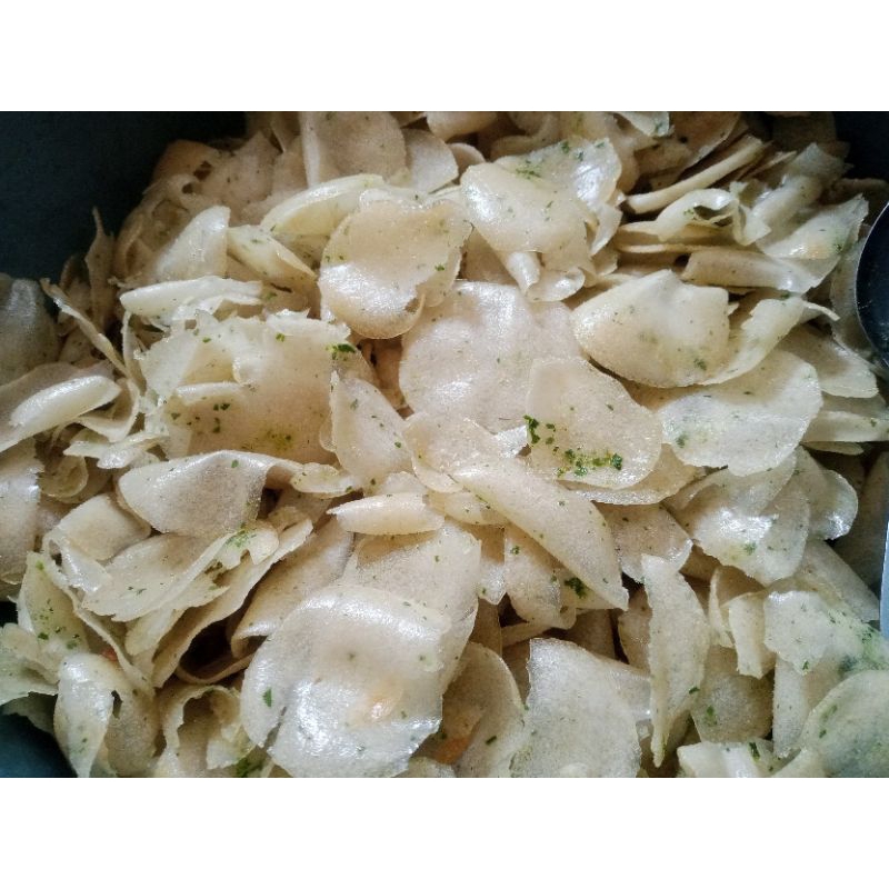 makanan ringan khas garut. komposisi tepung tapioka, terigu, garam dll. tanpa bahan pengawet. tektur tipis, renyah gurih seger daun jeruk.