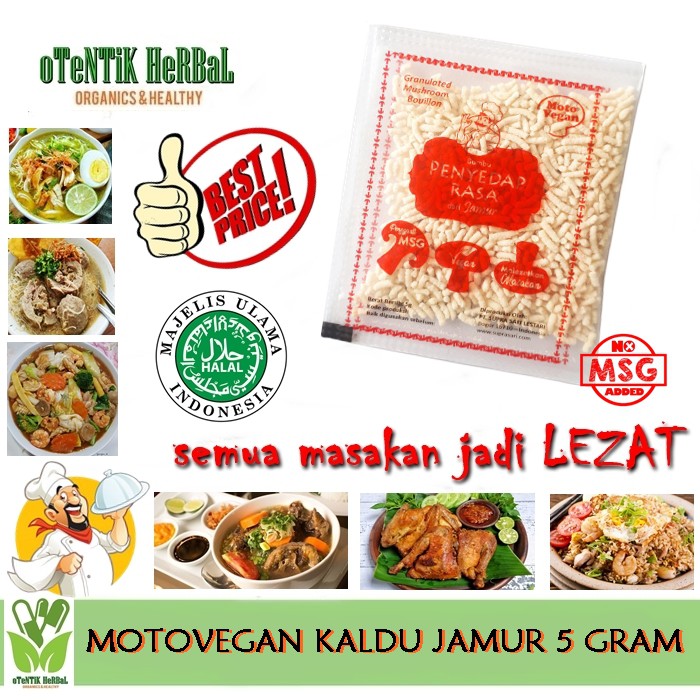 MOTOVEGAN KALDU JAMUR PENYEDAP RASA NON MSG HALAL MUI 5 GRAM 5 Gram / Sachet ( Isi 10 sachet )