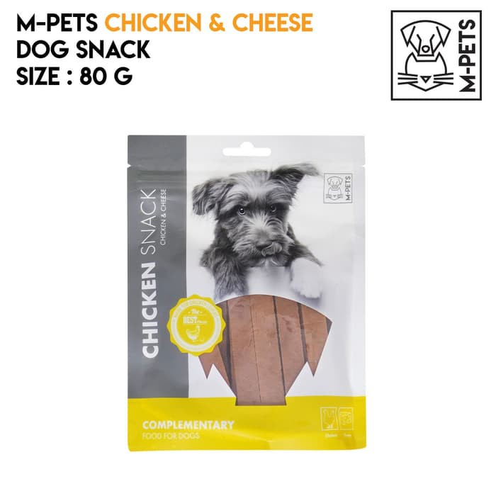 M-PETS CHICKEN SNACK CHICKEN & CHEESE.SNACK ANJING DARI M-PETS YANG SANGAT BERKUALITAS. DENGAN BAHAN DAGING AYAM 89% DAN CHEESE 2%, DIJAMIN NUTRISI ANJING KESAYANGAN ANDA TERPENUHI. COCOK UNTUK SEMUA JENIS ANJING.POTONGAN BENTUK PANJANG.ISI : 80 GRAM.
