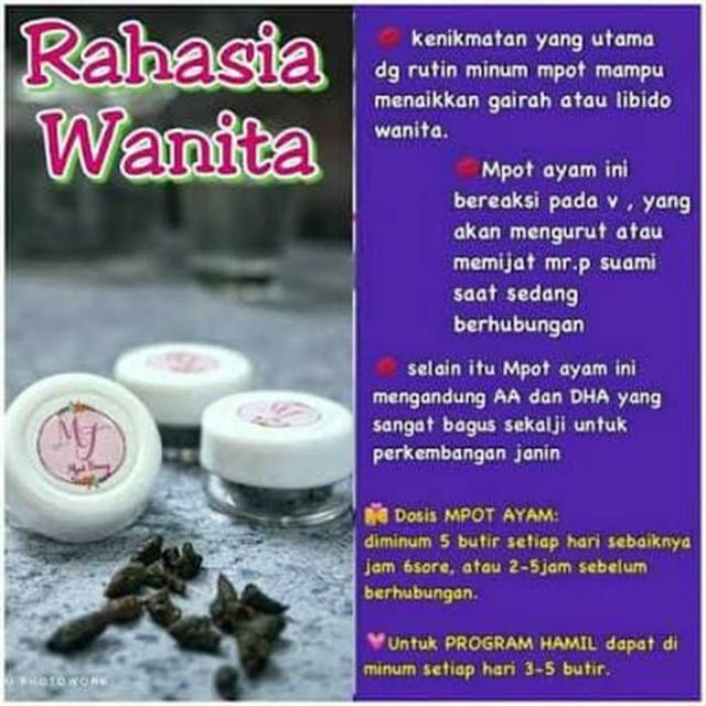 *) Membuat Perempuan mampu bertahan lama krna ada energi tambahan dr sari mpot2 khusus utk perempuan yg sdh mulai turun mesin.