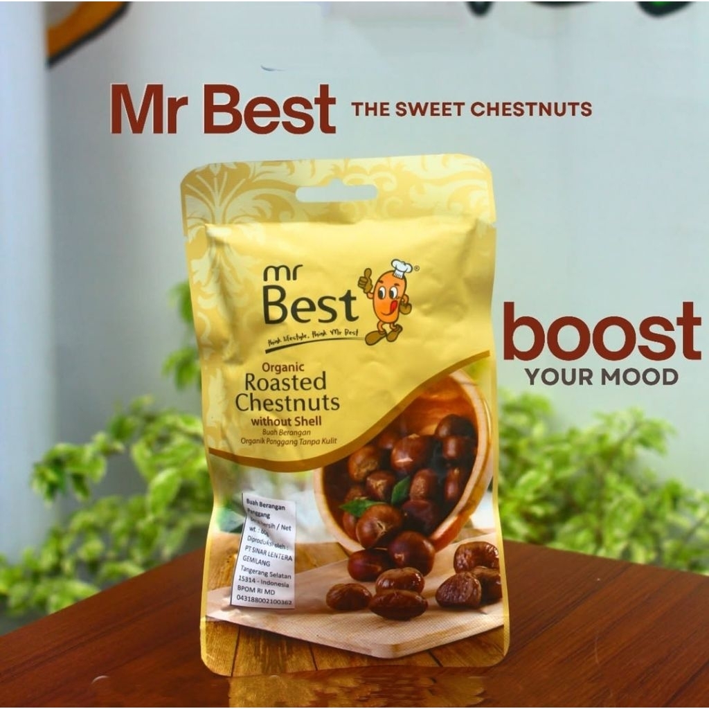 Mr. Best Organic Roasted Chestnuts adalah camilan kacang berangan panggang organik tanpa kulit. Kacang berangan ini kaya akan antioksidan, rendah kalori dan lemak, serta dapat memberikan manfaat bagi kesehatan jantung, pengendalian gula darah, penurunan berat badan, peradangan, dan kesehatan pencernaan.
