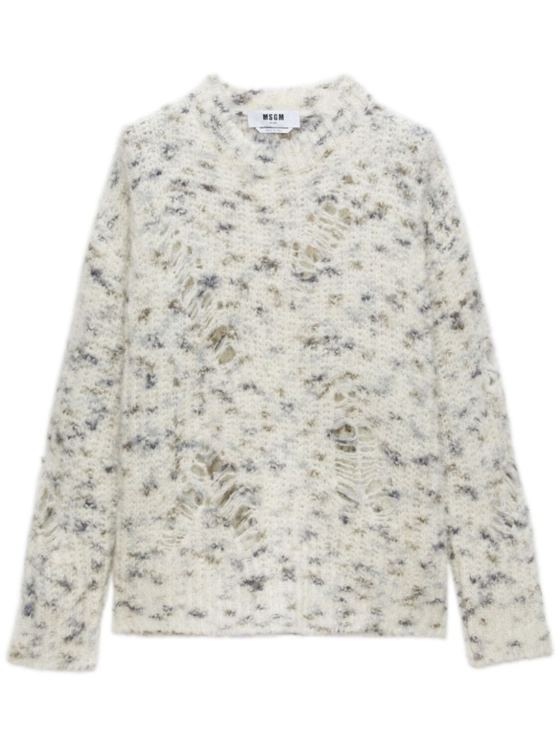 MSGM джемпер фактурной вязки с эффектом потертости, белый