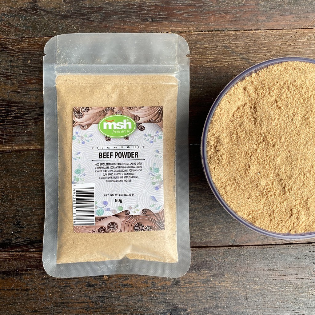Beef powder merupakan ekstrak daging untuk ditambahkan ke adonan tepung agar aroma dagingnya menjadi kuat. Kadang juga diberikan di adonan bakso, kuah bakso atau sop sebagai kaldunya.