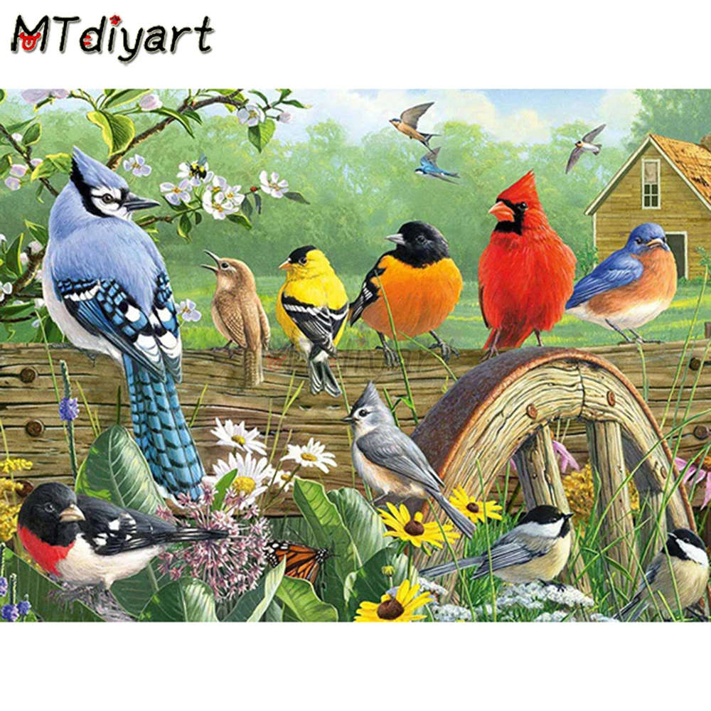 MTdiyart алмазов картина птица мозаика 5D Стикеры для украшения стен, Стикеры комплект полный дрель весенний вышивка пейзажа Животные вышивка к...