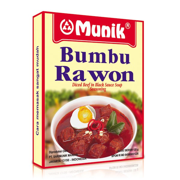 - 1 bungkus Munik Bumbu Rawon daging sapi.