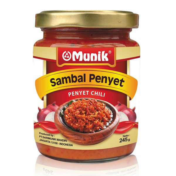Bebas dari ekstrak dan pewarna buatan, seluruh sambal Munik menjadi solusi MUdah dan NIKmat yang wajib ada di dapur setiap ibu pintar. Menggunakan bahan alami pilihan yang asli, segar dan cocok untuk lidah Indonesia, sambal Munik juga tahan lama sesuai instruksi penyimpanannya, bercitarasa khas, wangi penuh aroma dan higienis serta halal dalam setiap pembuatannya. Sambal ala restoran, cuma Sari Munik juaranya.
