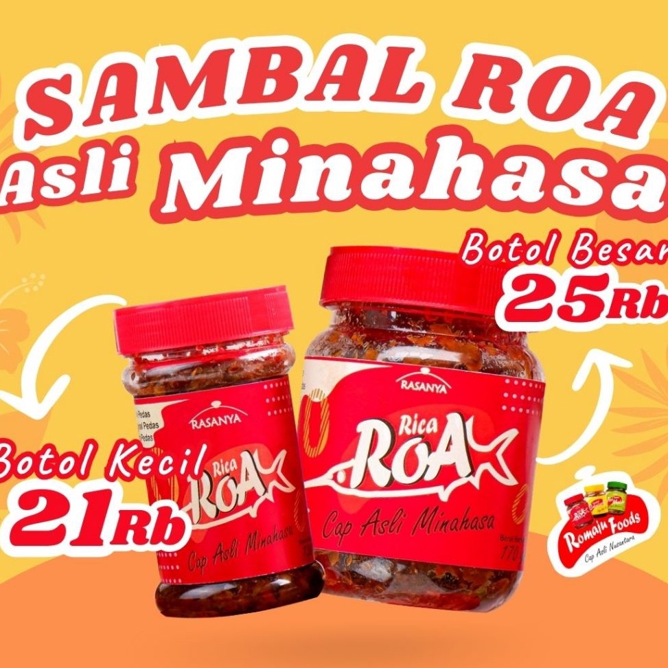 - Sambal Roa Khas Manado, ikan ROA langsung didatangkan dari Manado.