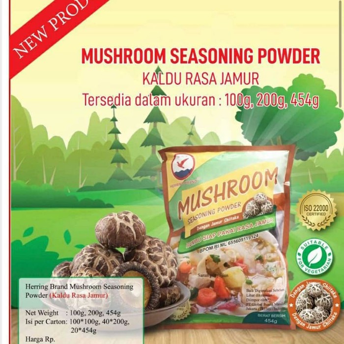 Kaldu jamur merupakan bumbu penyedap rasa yang diolah dari bahan jamur. Mushroom Seasoning Powder tersedia dalam bentuk bumbu kering. Meski terbuat dari bahan non hewani, kaldu jamur ini mempunyai rasa yang gurih dan juga sedap sehingga nggak kalah dengan kaldu ayam ataupun sapi.